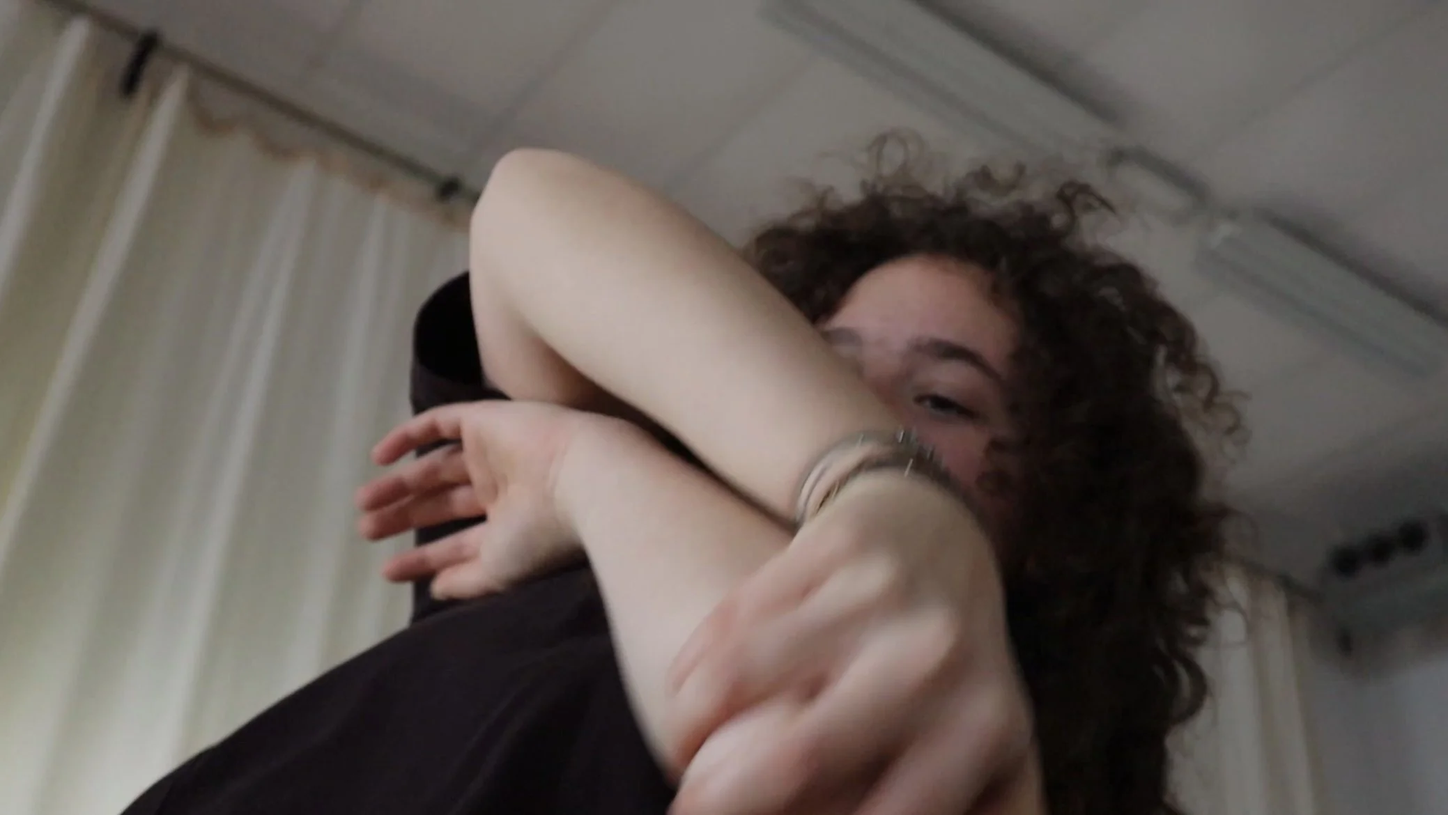 Dit zijn uitprobeersels voor een verhalende dansfilm. Je ziet de samenwerking tussen fysieke beweging en beeldtaal. Zo kan je zonder tekst toch heel goed een verhaal vertellen.