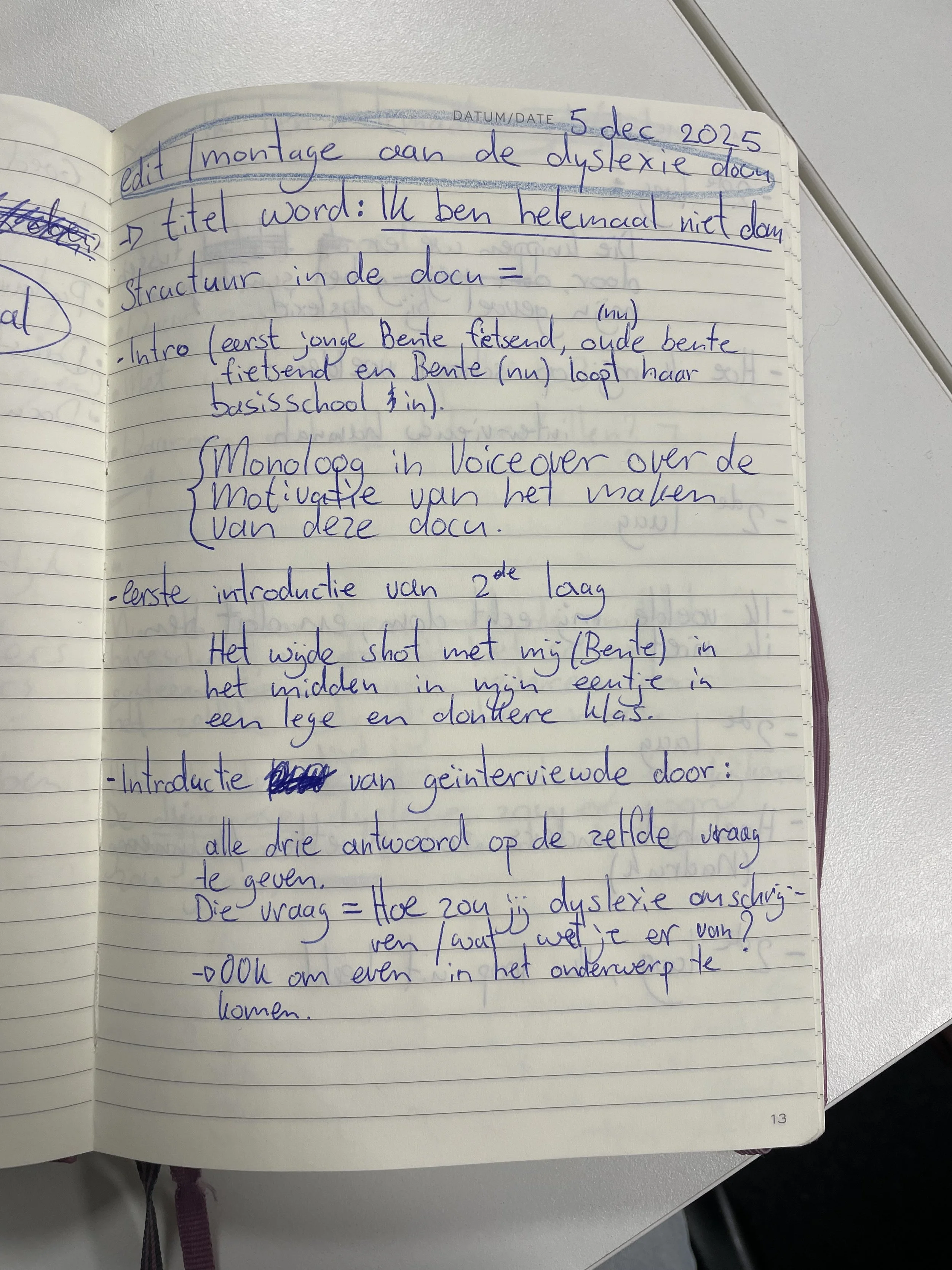 Mijn eigen aantekeningen voor de documentaire: