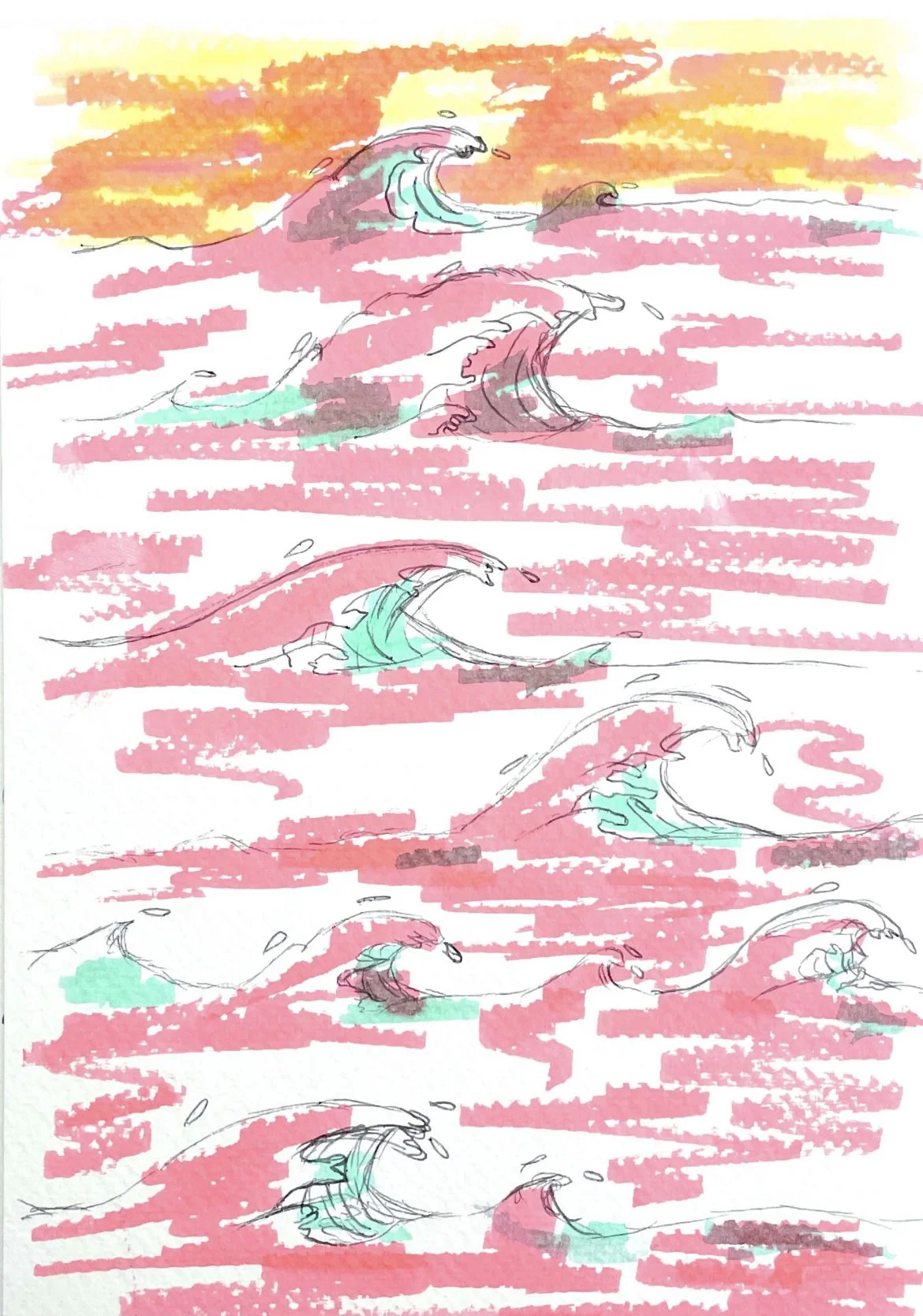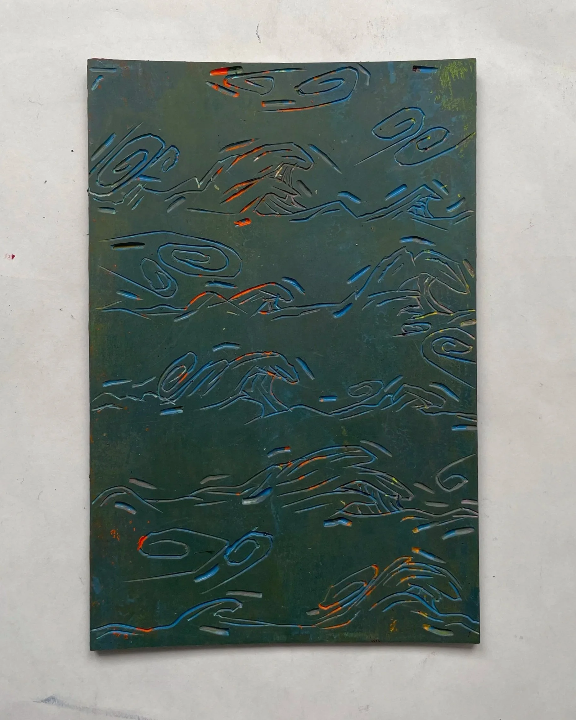 Lino snede die ik van de golven tekening heb gemaakt