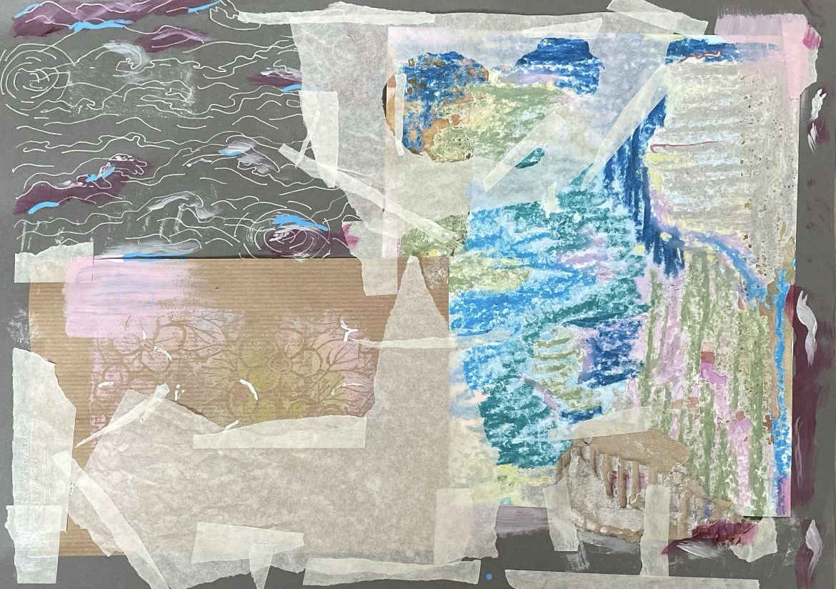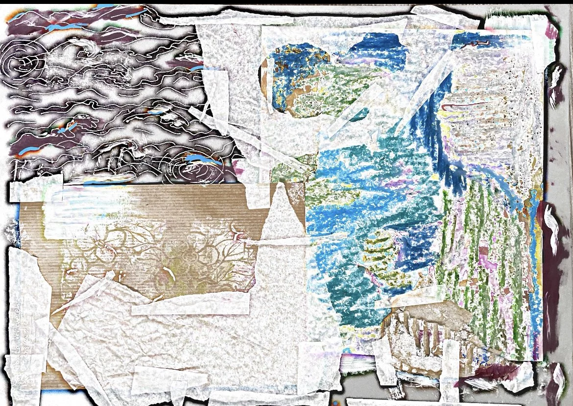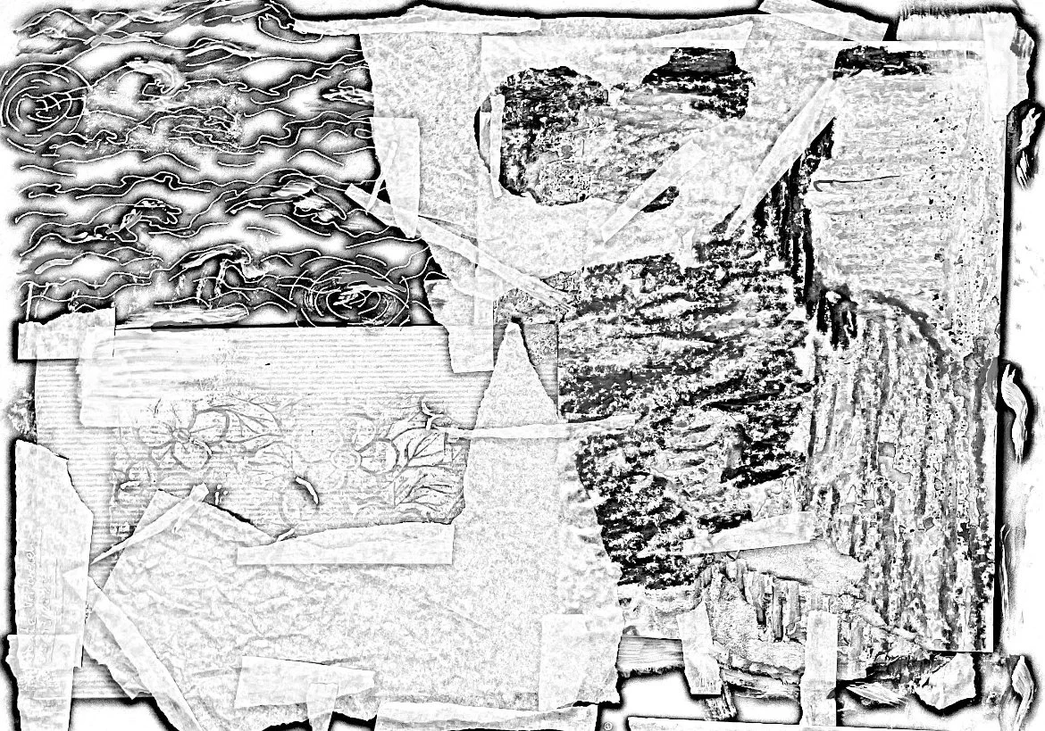 Ik heb wat collages gemaakt om ze te kunnen in scannen en er meer een textuur van kan maken. Die texturen kan ik dan weer gebruiken over foto’s of video’s heen.
